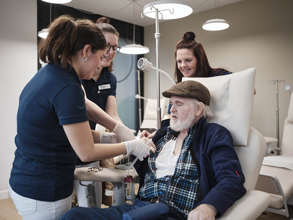 Zur Behandlung von Blut- und Krebserkrankungen stehen eine ganze Reihe unterschiedlicher systemischer Therapieoptionen zur Verfügung. Wir beraten Sie fortwährend über die bestmögliche Behandlung und führen diese in unserer Tagesklinik durch. In unserer 2023 komplett neu gestalteten und erweiterten Tagesklinik erhalten Sie das komplette Spektrum der modernen Therapiemöglichkeiten (klassische Chemotherapie, zielgerichtete Therapie, Immuntherapie, Hormontherapie), nachdem wir Sie über Ihre bestmögliche Behandlung beraten haben.